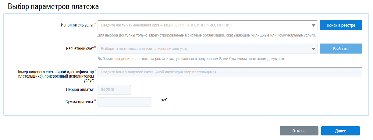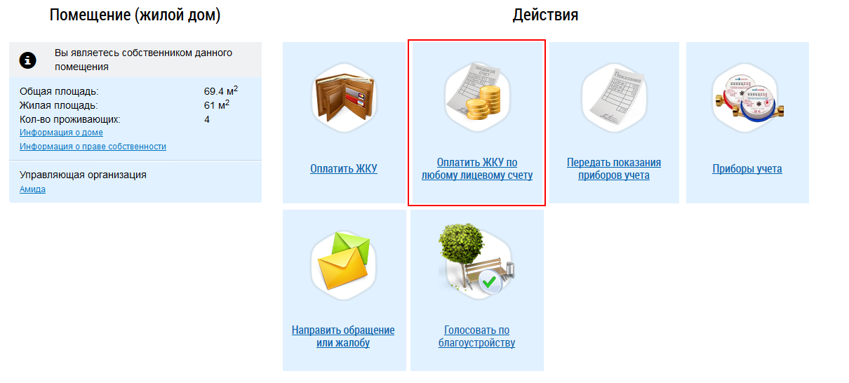 Оплата ЖКУ по любому лицевому счету