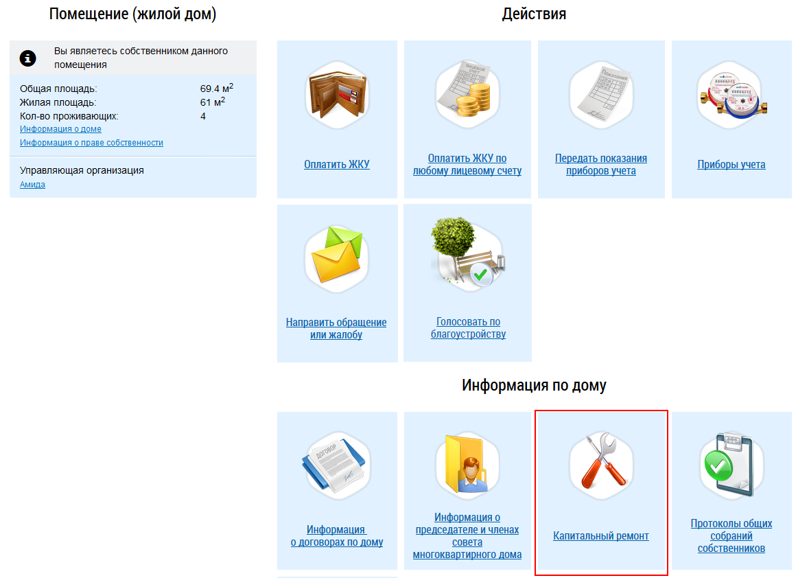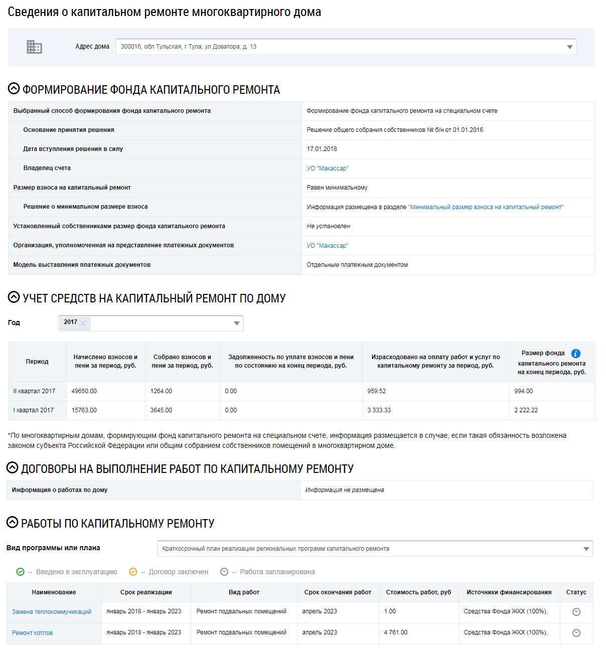 Просмотр сведений о капитальном ремонте многоквартирного дома.