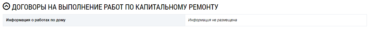Если информация о договорах на выполнение работ по капремонту не размещена в Системе, в блоке Договоры на выполнение работ по капитальному ремонту отображается уведомление: «Информация не размещена».