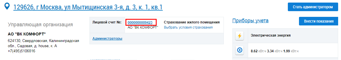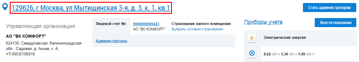 - Адрес управляющей организации.