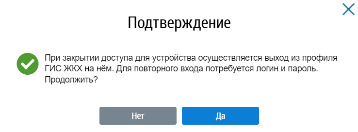Для подтверждения закрытия доступа нажмите на кнопку Да, для отмены действия - Нет.