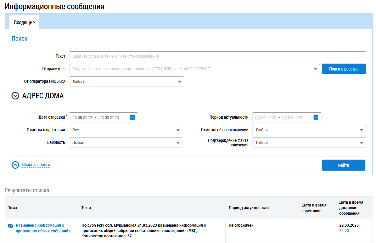 Поиск и просмотр информационных сообщений.