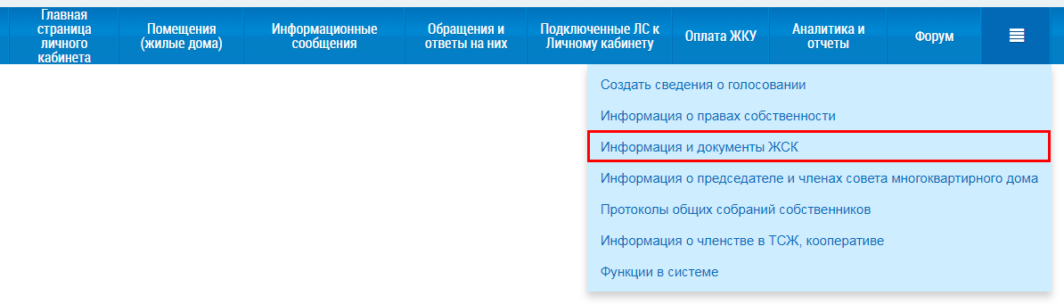 затем – пункт выпадающего меню Информация и документы ЖСК.