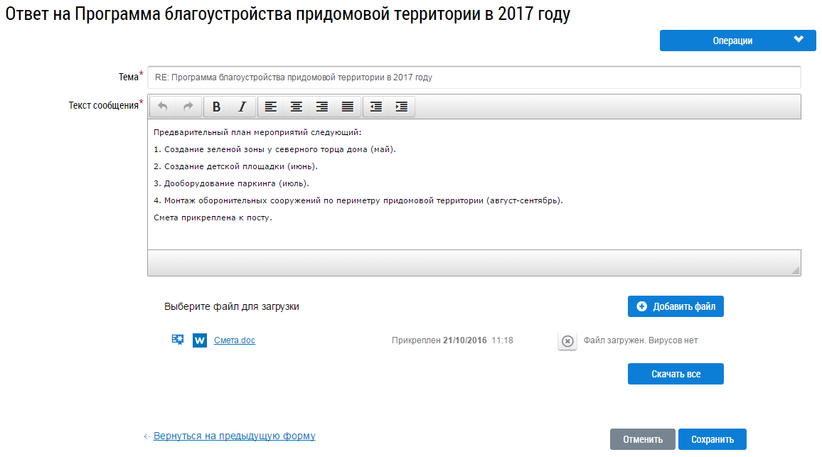 верхней части поля Текст сообщения. При необходимости прикрепите файл к