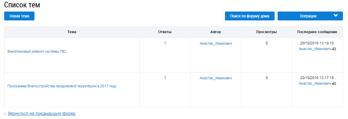 Выберите интересующую вас тему. Отображается список сообщений по данной теме.