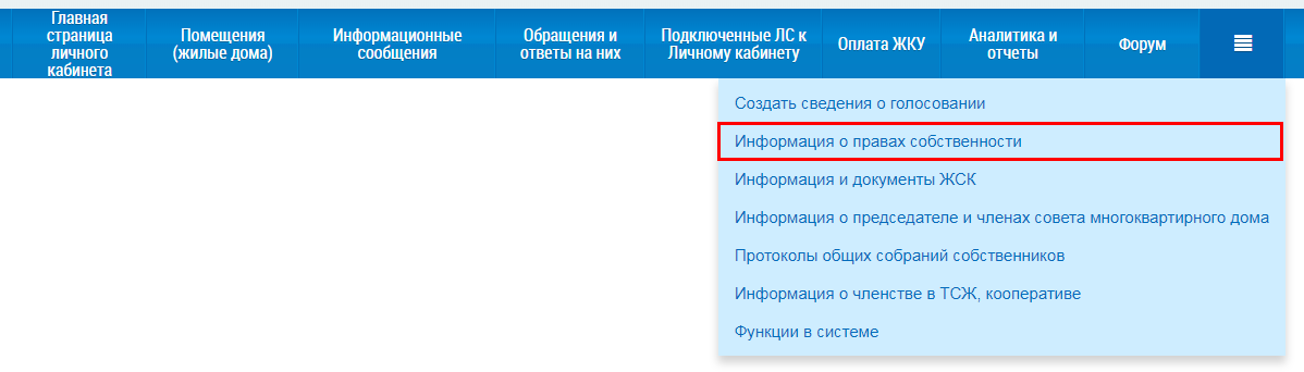 затем – пункт выпадающего меню Информация о правах собственности.