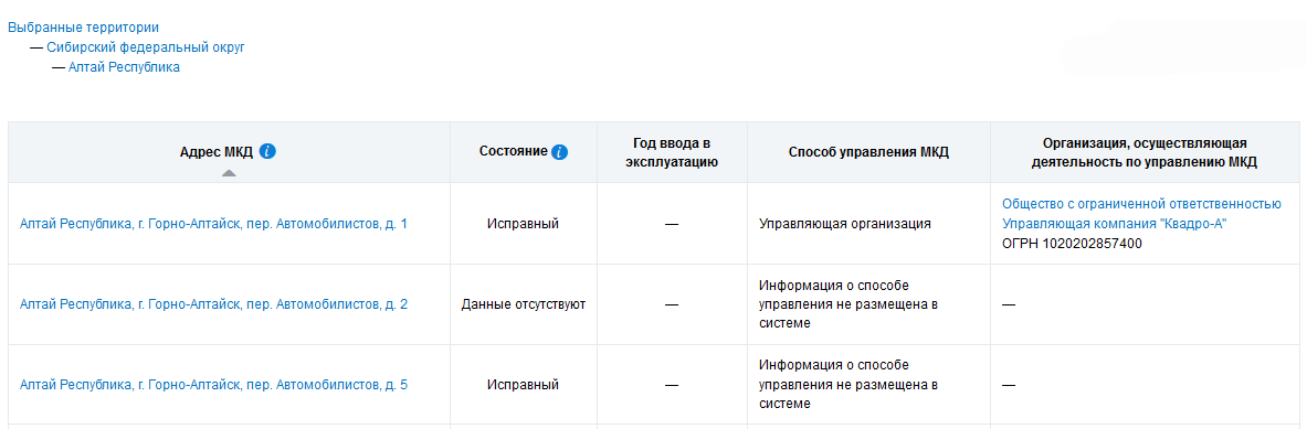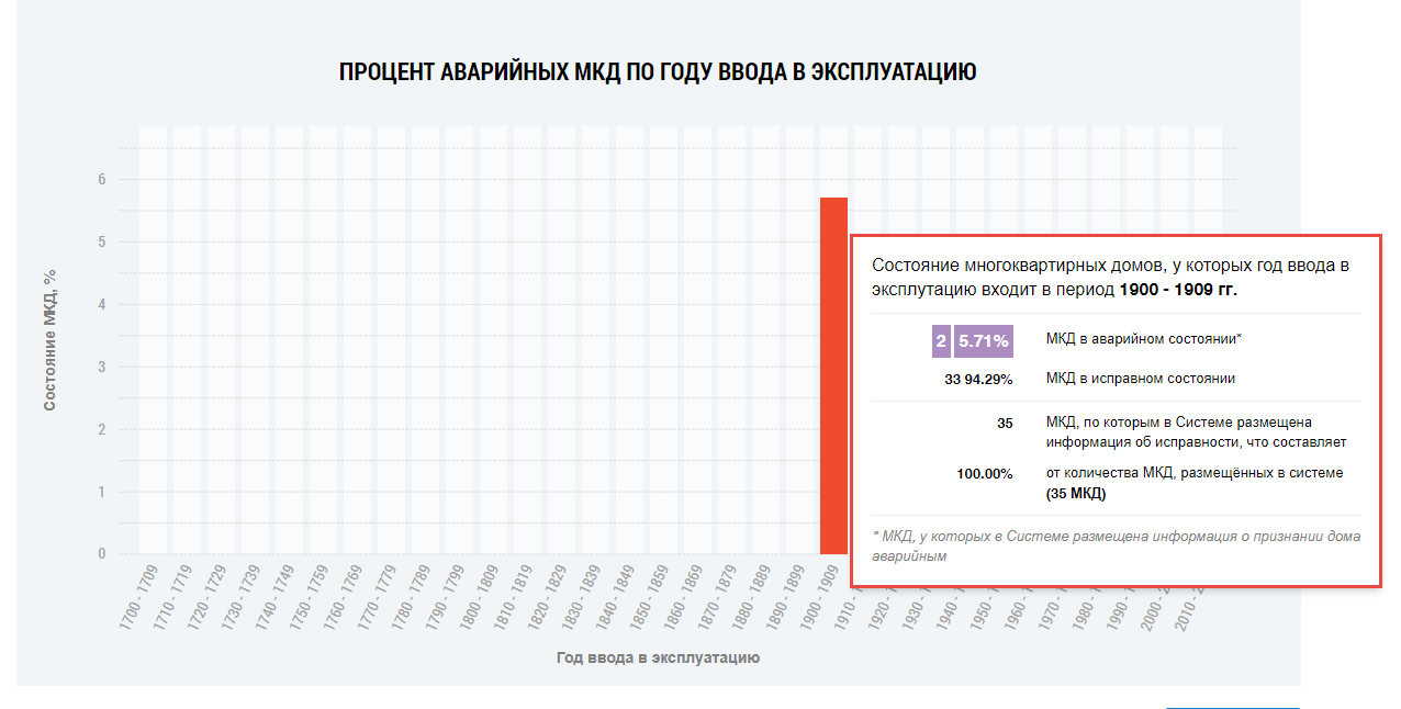 Отображается анализ информации об МКД, по которым размещена информации об исправности.
