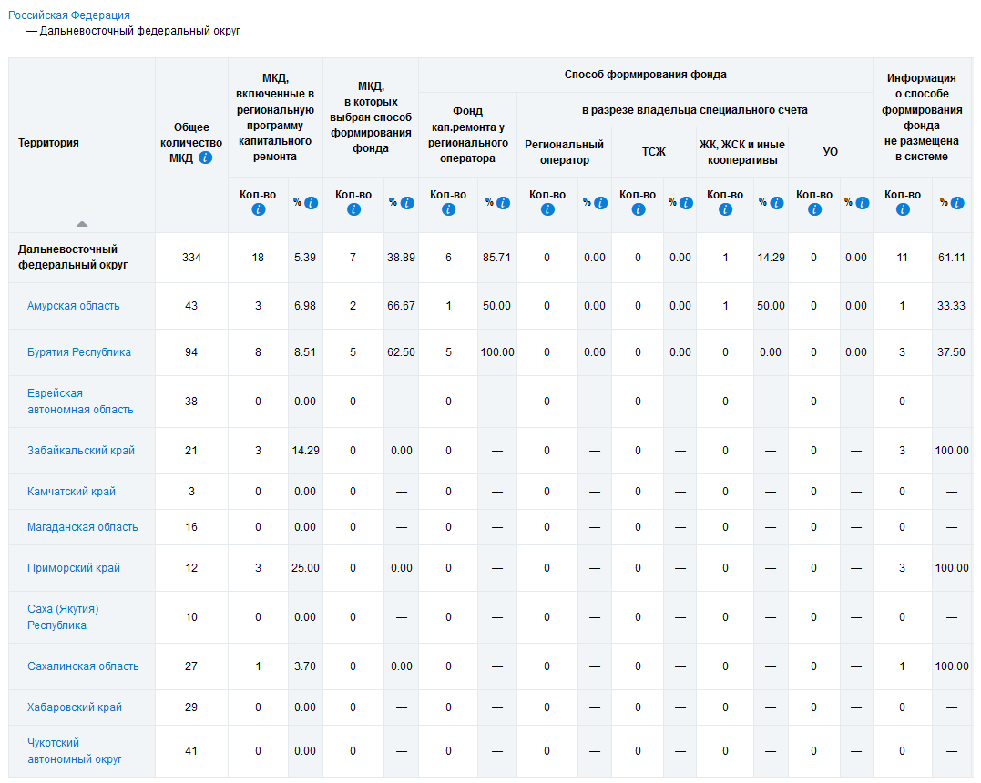 Таблица распределения МКД по способу формирования капремонта