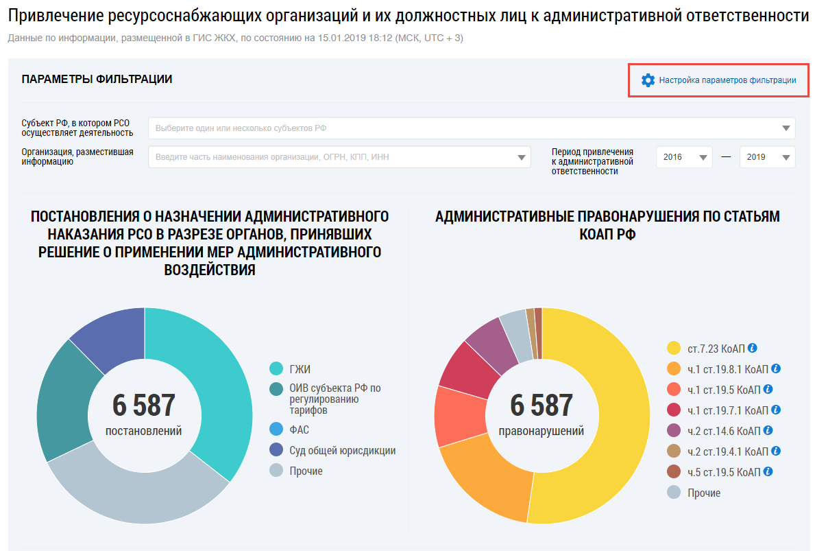 Отображается страница Привлечение ресурсоснабжающих организаций и их должностных лиц к административной ответственности.