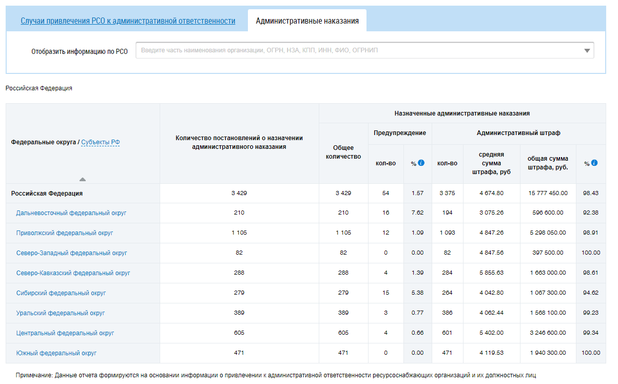 Отчет о привлечении РСО и их должностных лиц к административной ответственности.