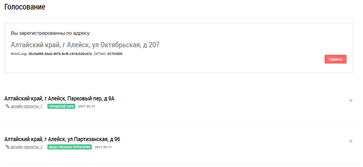 Отображается список объектов благоустройства, связанных с вашим адресом.