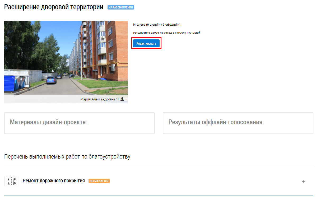 Для редактирования информации о дизайн-проекте нажмите на кнопку Редактировать.