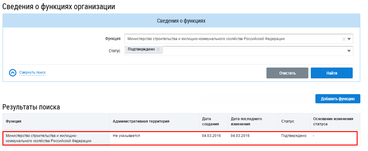 Рис. 2. Страница «Сведения о функциях организации». Блок результатов поиска
