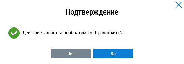 Отображается окно подтверждения. Нажмите Да.
