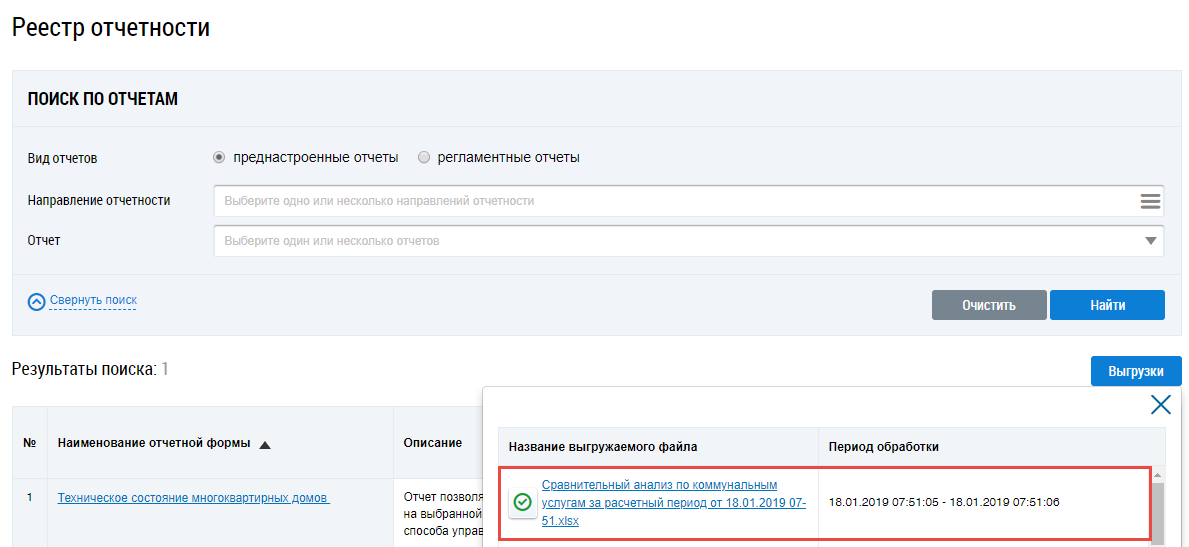 Файл с отчетом сохранится на Ваш компьютер. Файл отчета хранится в Системе 10 дней.