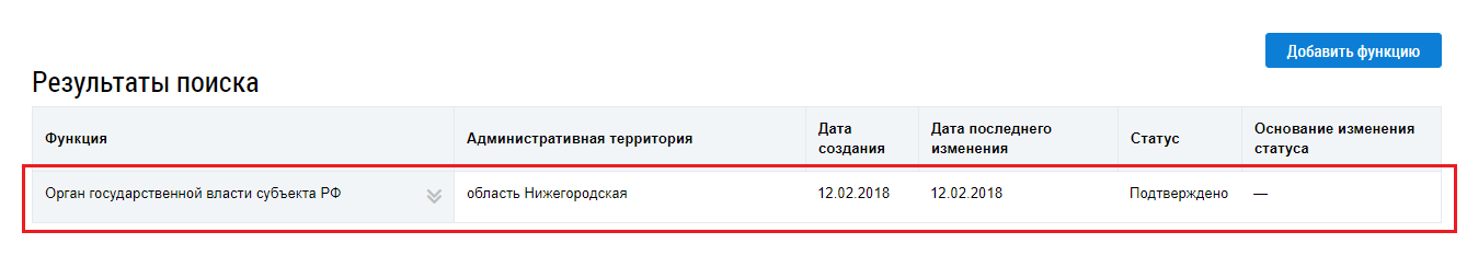 Рис. 2. Страница «Сведения о функциях организации». Блок результатов поиска