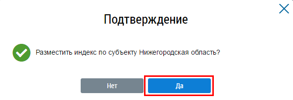 Подтвердите действия по размещению индекса, нажав на кнопку Да.
