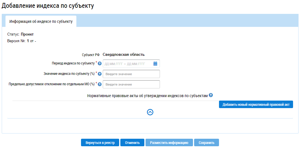 Отображается форма добавления индекса по субъекту.