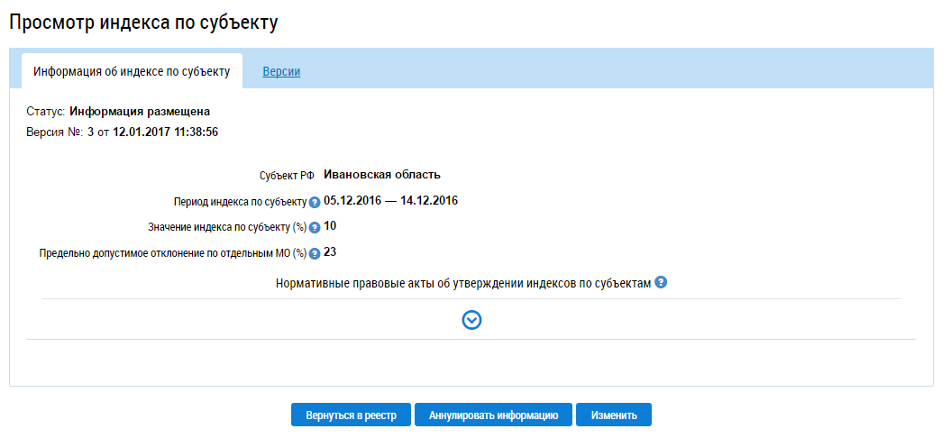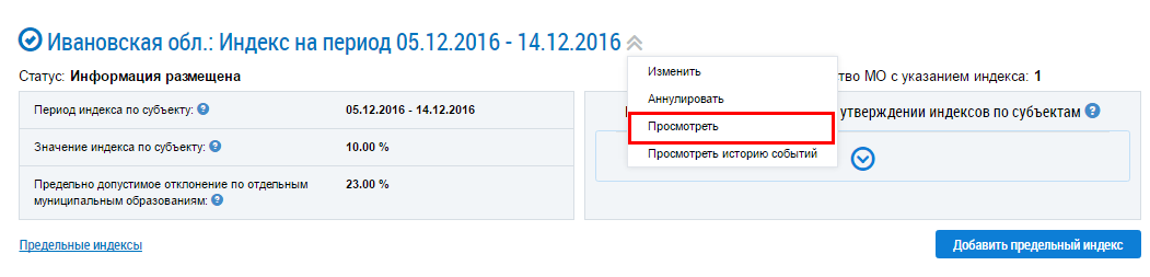 Для просмотра индексов по субъекту выберите пункт контекстного меню Просмотреть.