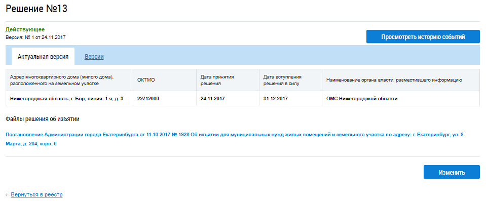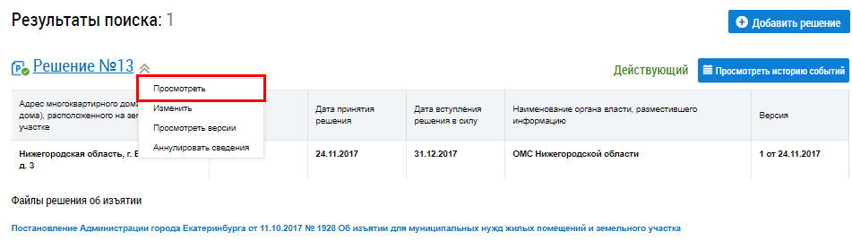 Просмотр решений об изъятии земельных участков