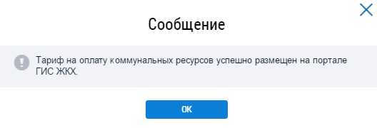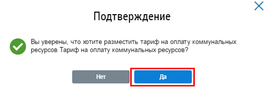 Подтвердите действия по размещению тарифа на оплату коммунальных ресурсов, нажав на кнопку Да.