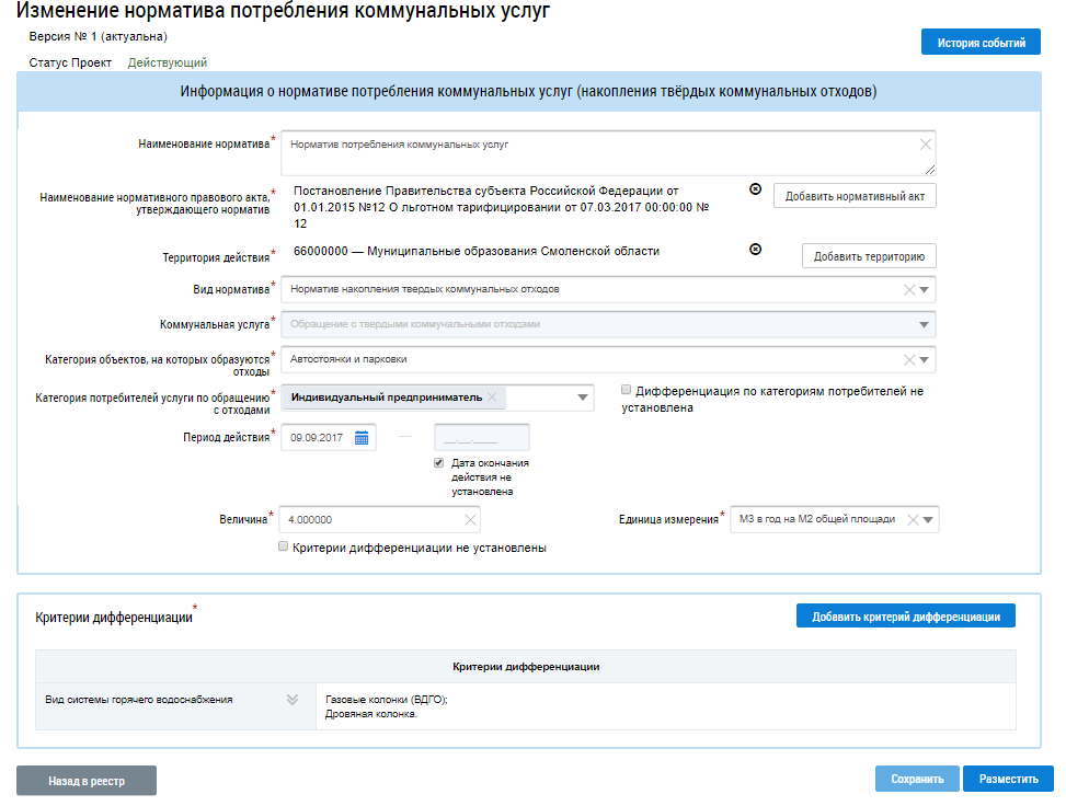 Изменение информации о нормативе потребления коммунальных услуг