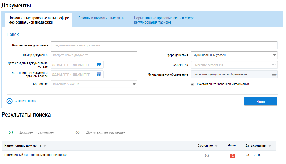 Раздел реализован для просмотра размещенных нормативных правовых актов в сфере мер социальной поддержки,