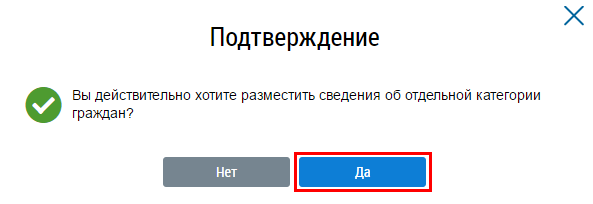 Подтвердите действия по размещению сведений об отдельной категории граждан.