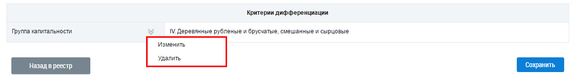 Для изменения критерия дифференциации раскройте контекстное меню и выберите пункт Изменить. Чтобы удалить критерий дифференциации выберите пункт контекстного меню Удалить.