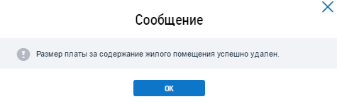 Подтвердите действия по удалению информации о размере платы за содержание жилого помещения, нажав на кнопку Да. Отображается информационное сообщение.