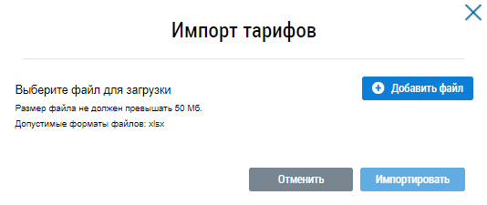 Нажмите на кнопку Добавить файл, выберите заполненный шаблон загрузки и нажмите на кнопку Импортировать. Статус обработки файла загрузки отображается на странице Реестр статусов обработки файлов (см. Реестр статусов обработки файлов ).