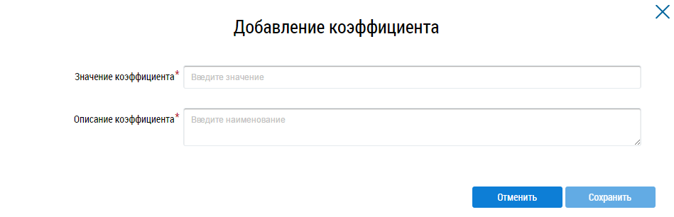 Чтобы добавить коэффициент, нажмите на кнопку Добавить коэффициент.