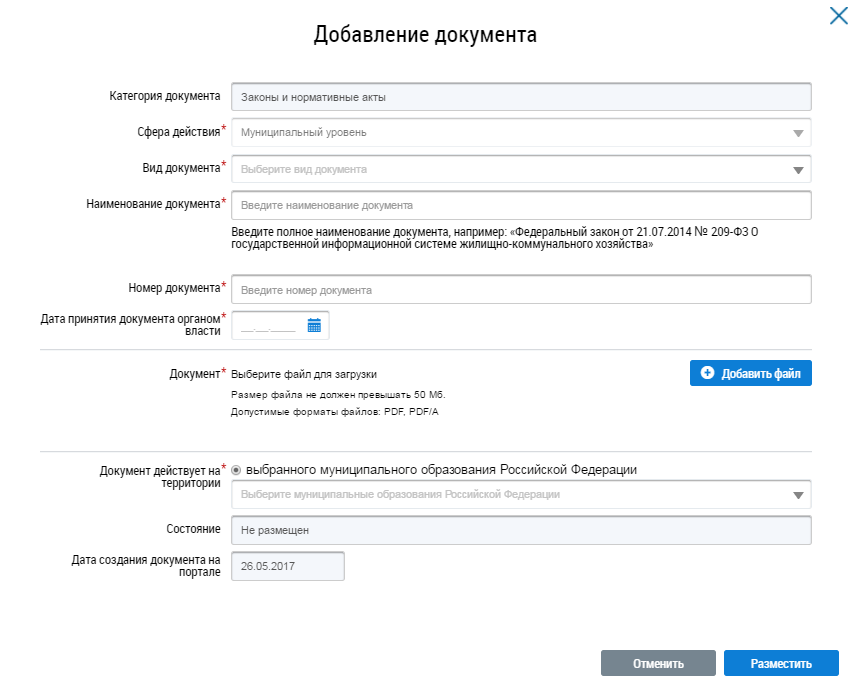 Заполните обязательные поля и нажмите на кнопку Разместить.