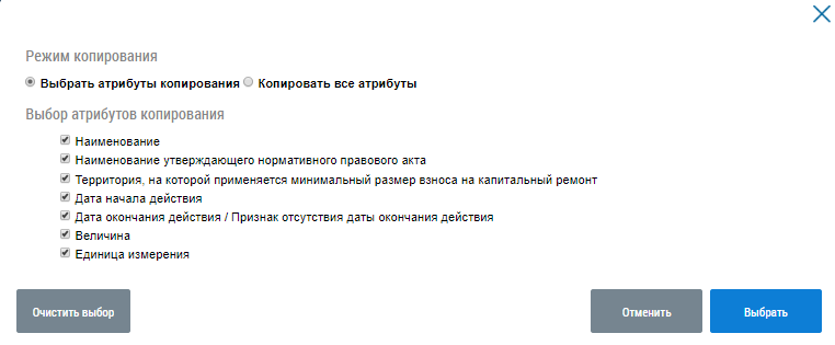 Установите флажки напротив необходимых атрибутов и нажмите на кнопку Выбрать.
