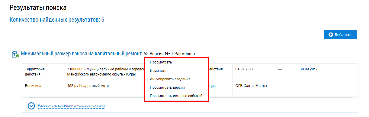 Для просмотра минимального размера взноса на капитальный ремонт раскройте контекстное меню и выберите пункт Просмотреть.