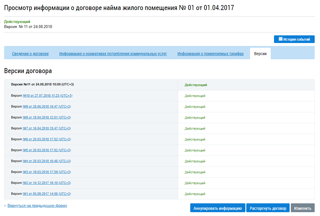 Для просмотра информации о версиях договора перейдите на соответствующую вкладку.