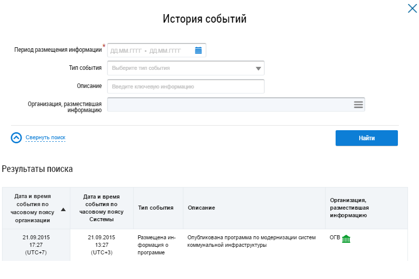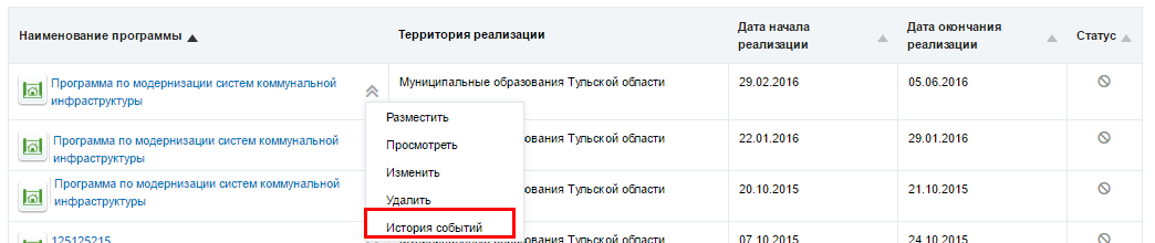 Для просмотра истории событий раскройте контекстное меню и выберите пункт История событий.