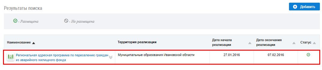 В блоке результатов поиска отображаются программы, соответствующие установленным параметрам поиска.