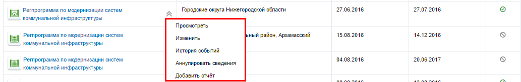 Для просмотра истории событий по программе выберите пункт контекстного меню История событий на странице Реестр программ.