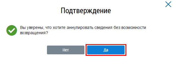 Подтвердите действия по аннулированию сведений о программе, нажав на кнопку Да.