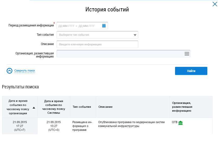 Просмотр истории событий
