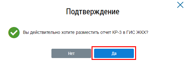 Подтвердите действия по размещению отчета, нажав на кнопку Да.