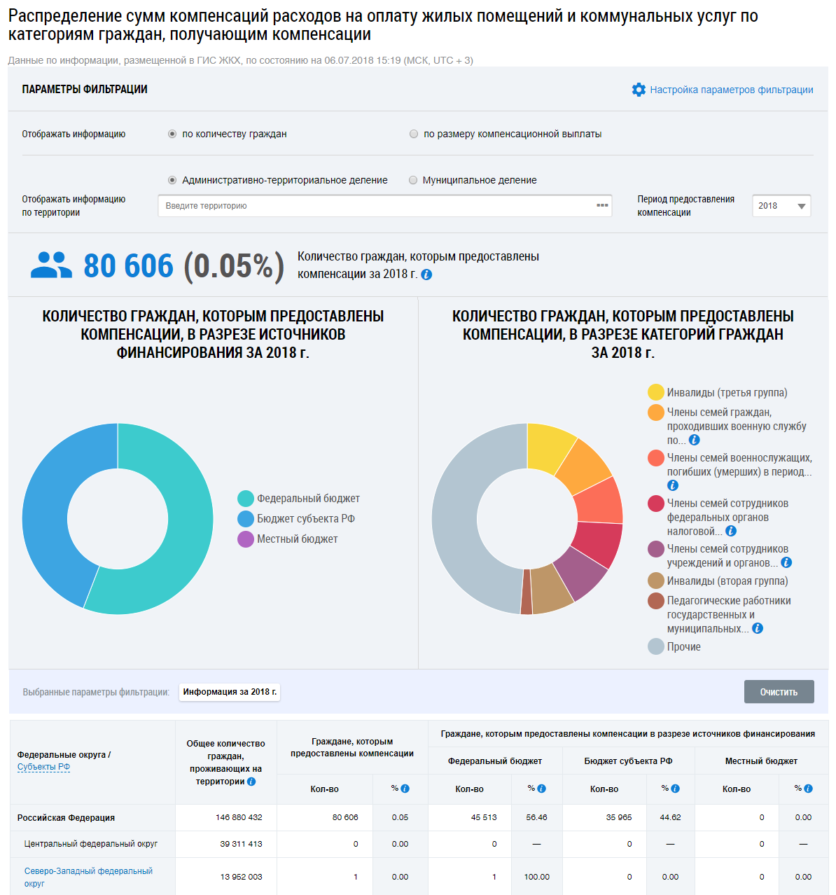 Данный раздел доступен после предоставления представителю организации прав доступа к отчету Распределение сумм компенсаций расходов на оплату жилых помещений и коммунальных услуг по категориям граждан, получающим компенсации. Для предоставления права доступа обратитесь к Администратору организации.