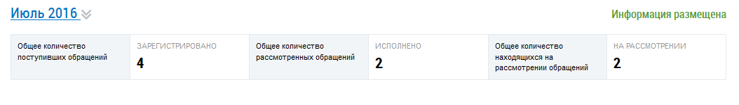 После размещения информация об обращениях и о результатах их рассмотрения переходит в статус Информация размещена.