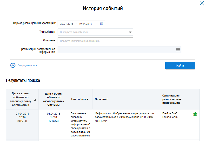 Для просмотра истории событий выберите пункт контекстного меню Просмотреть историю событий.
