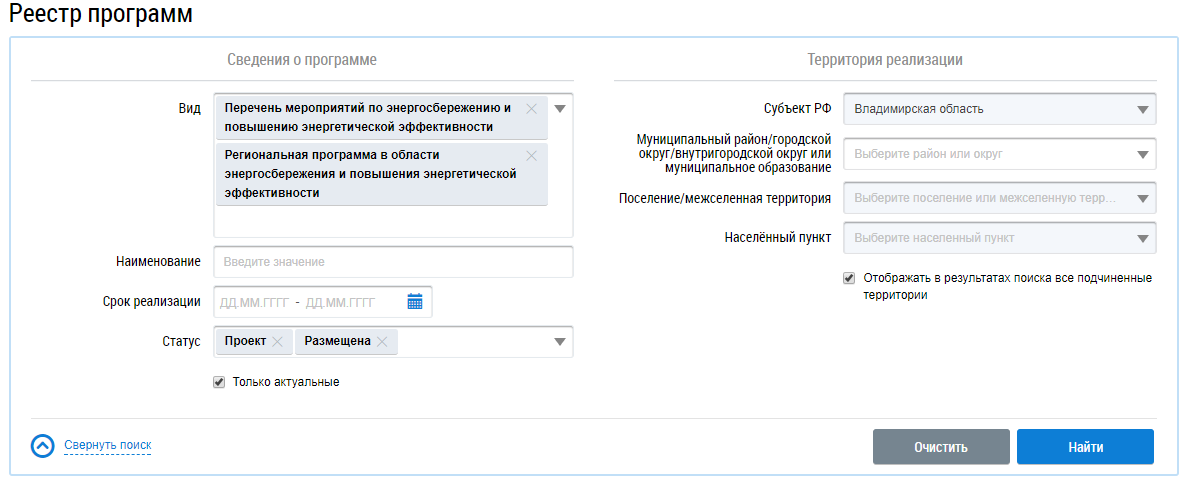 Поиск программ возможен по одному или нескольким параметрам. Нажмите на кнопку Найти.