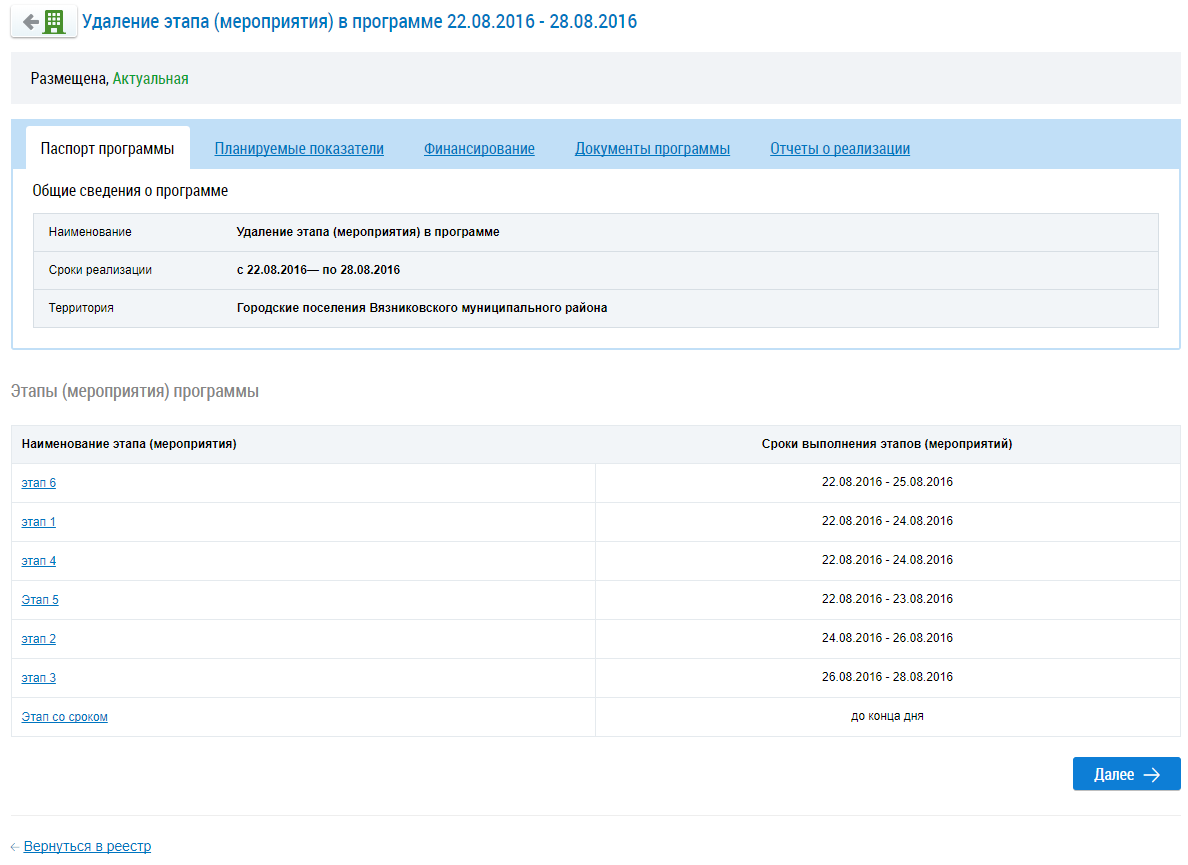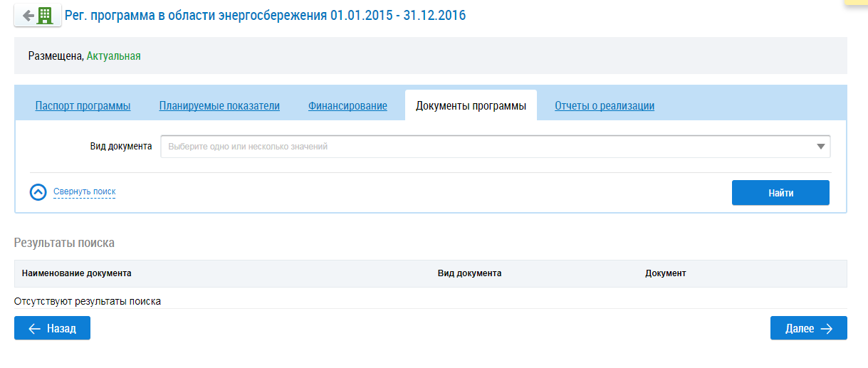 Для просмотра информации о документах программы нажмите на соответствующую вкладку или нажмите на кнопку Далее.
