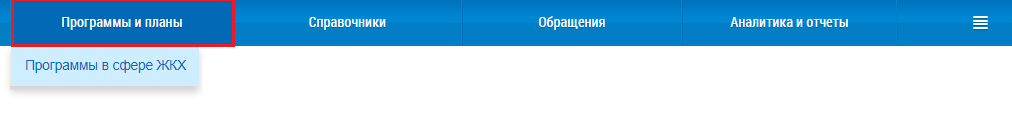 При нажатии на пункт горизонтального навигационного меню Программы и планы отображается контекстное меню раздела.