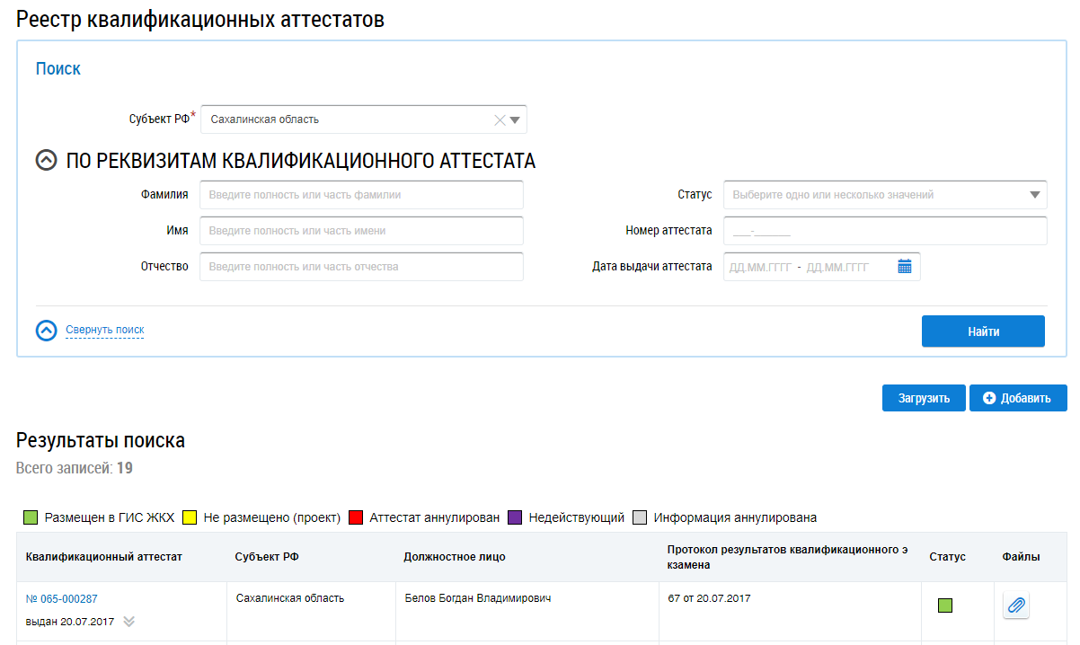 Данный раздел доступен после предоставления представителю организации права доступа «Доступ к реестру квалификационных аттестатов на просмотр». Для получения необходимых прав обратитесь к Администратору организации.