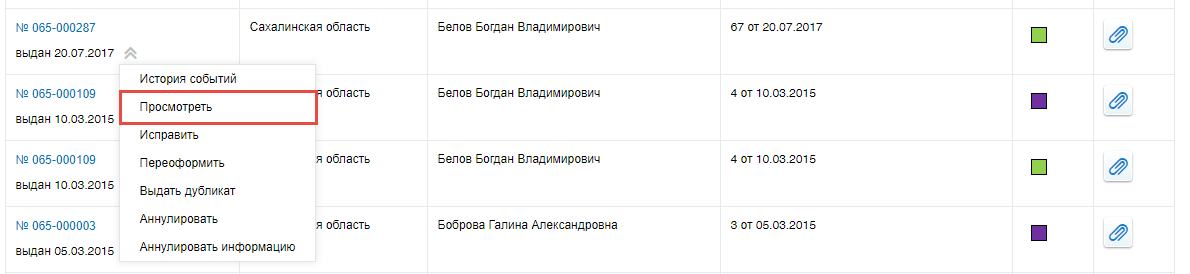 Для просмотра доступны квалификационные аттестаты по всем субъектам. Для этого выберите пункт контекстного меню Просмотреть квалификационного аттестата.